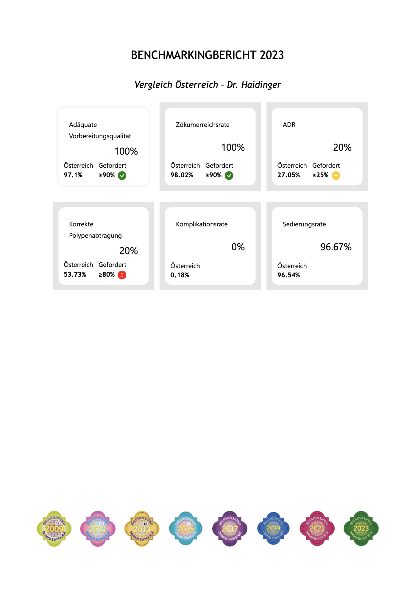 Es wurden 691 Koloskopien durchgeführt, 214 davon als reine Vorsorgeuntersuchungen. Dabei wurden bei 185 Patienten (26,8%) 307 Polypen festgestellt und in selbiger Untersuchung abgetragen. Darüber hinaus wurden 397 Gastrokopien durchgeführt.